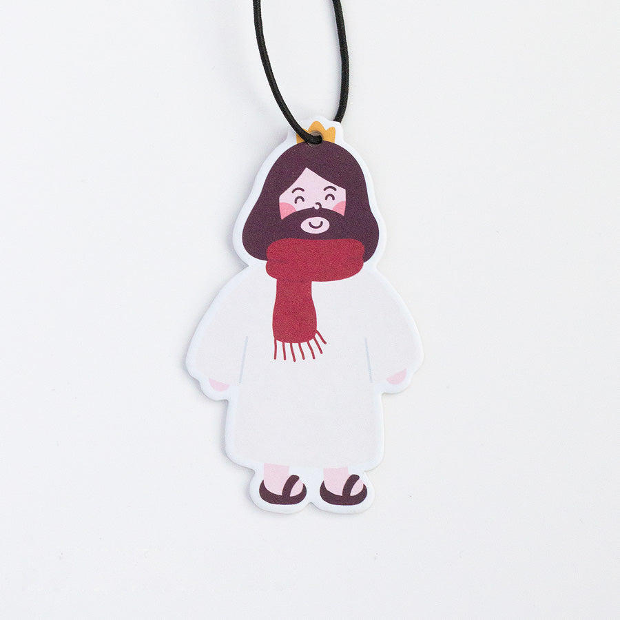 Inspirational air fresheners with 'Emmanuel' and cartoon Jesus design