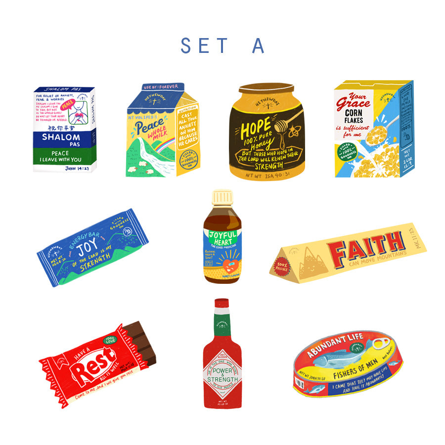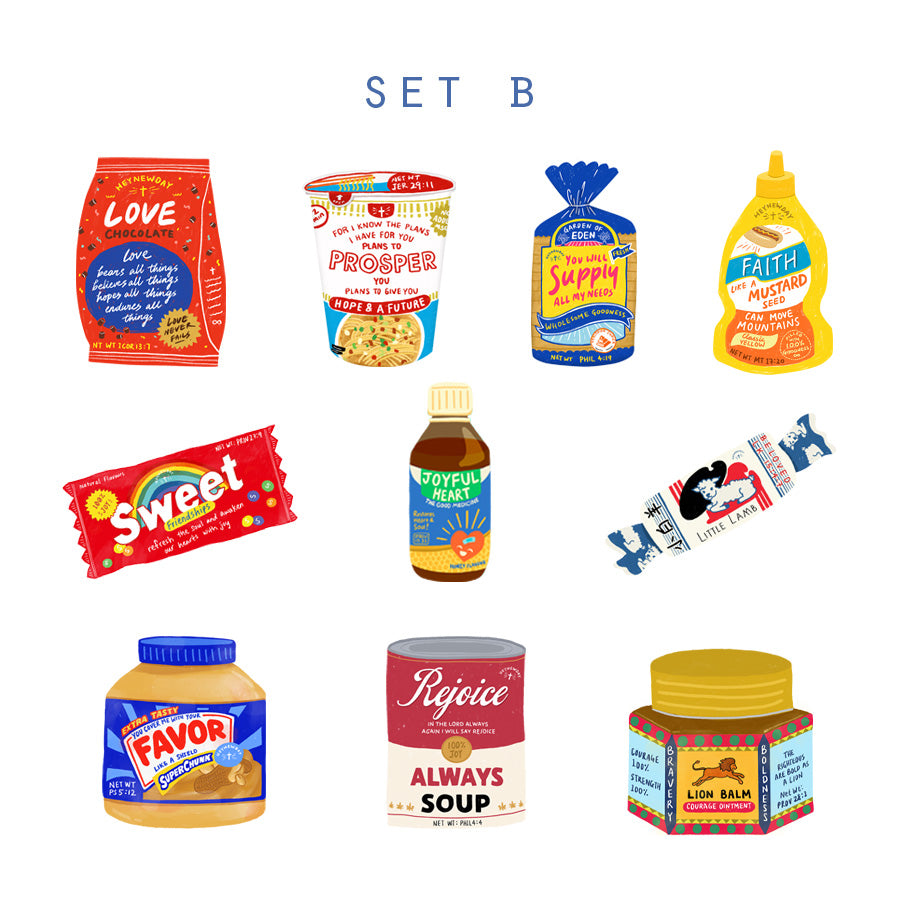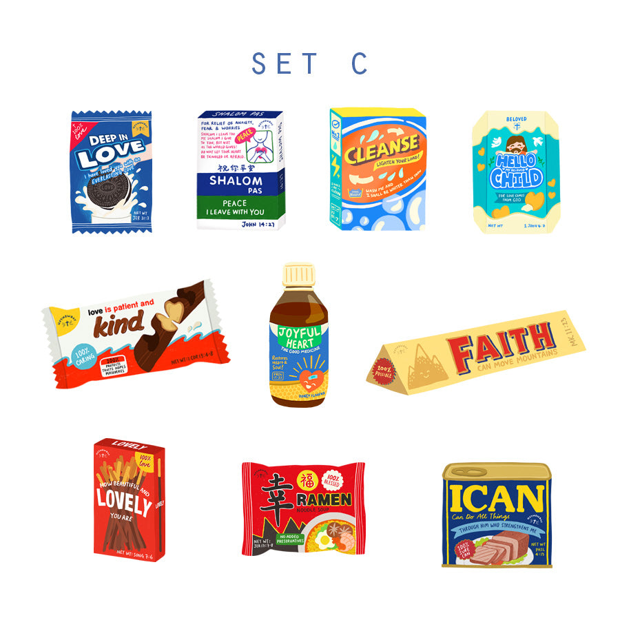 Love Supermarket Decal Sticker Pack is great to decorate your laptops, journals, or handphones! Bring this ready-to-go size God's Word food packaging anywhere you go. Be reminded of Seven Eleven (Matt 7:7-11) that God is always there for you 24/7.
