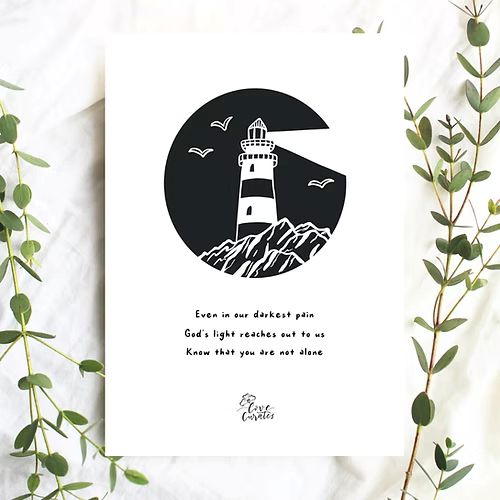 Let light lead the way with the Light Through The Cracks Postcard (Lighthouse) — a striking postcard featuring a lone lighthouse casting light through stormy skies. This inspiring art print reminds us that even in turbulent times, we can find clarity, direction, and hope.