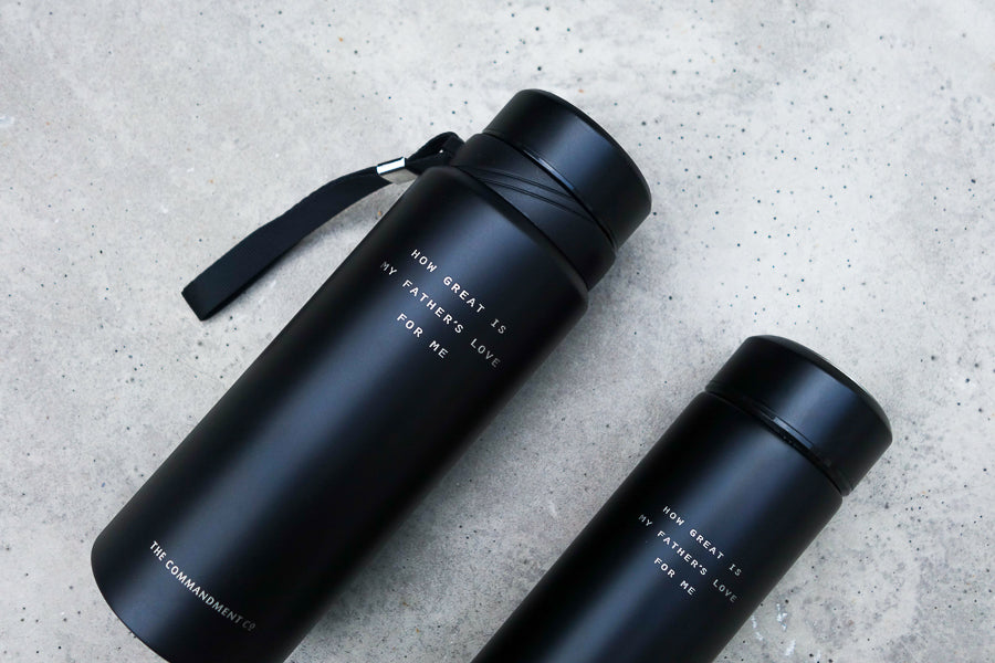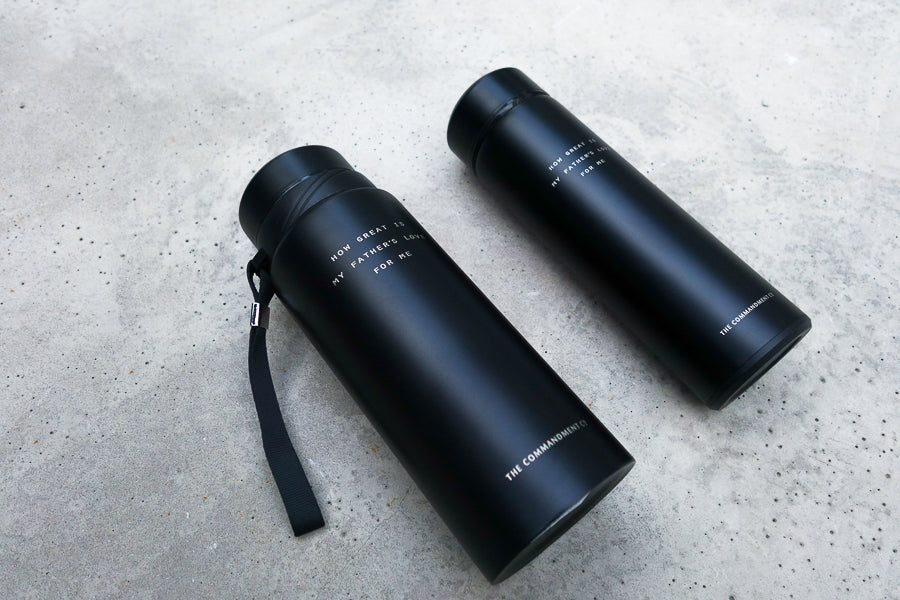 Minimalist stainless steel vacuum flask for everyday use.
